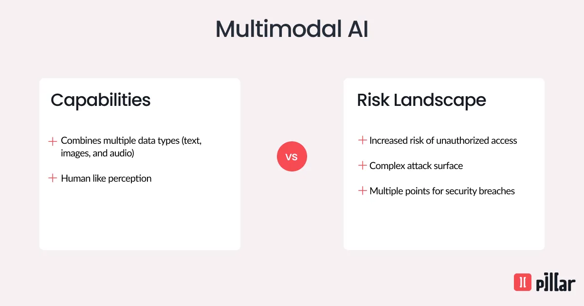 - Handling multiple data types introduces multiple data touchpoints and processing pipelines, increasing the risk of unauthorized access to or misuse of sensitive information.