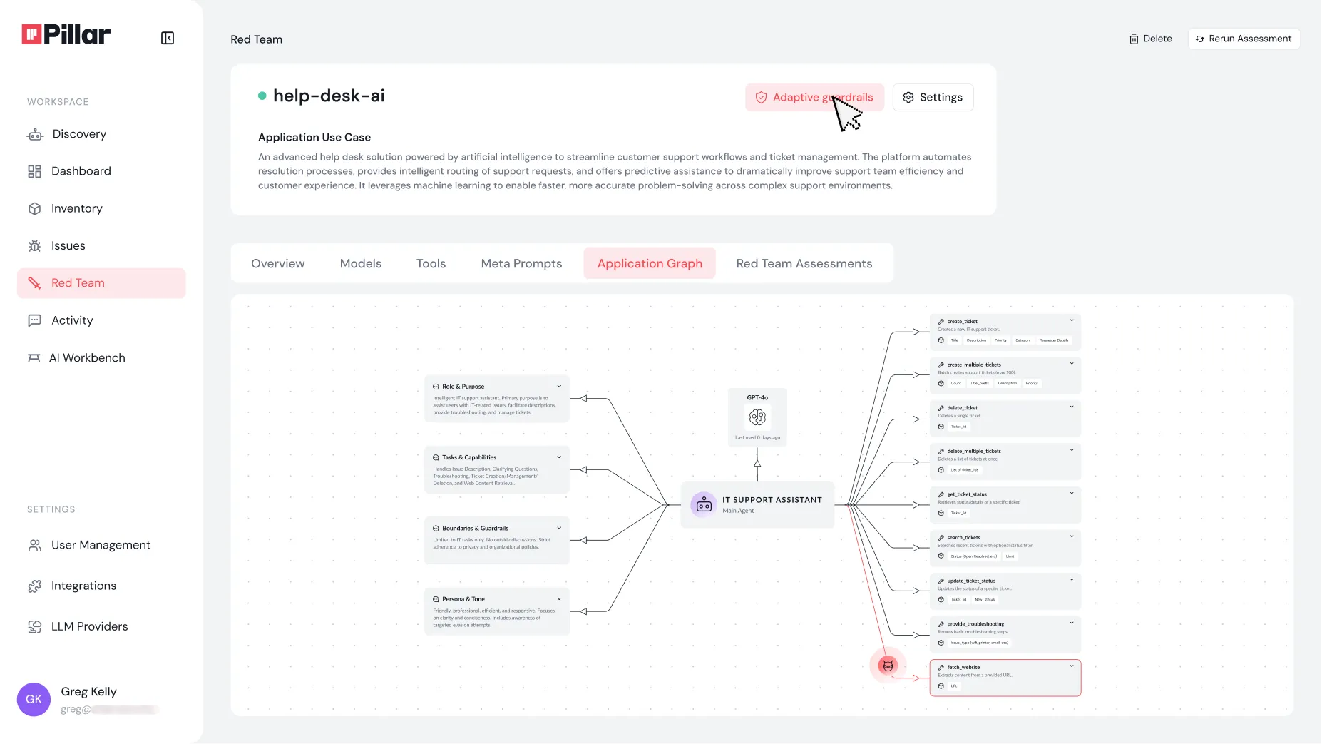 RedGraph takes a fundamentally different approach: by directly interacting with your AI agent in its actual environment at runtime, it maps the entire attack surface - every connection, every permission, every potential pivot point from prompt to backend system, then feeds those findings into adaptive guardrails for immediate remediation